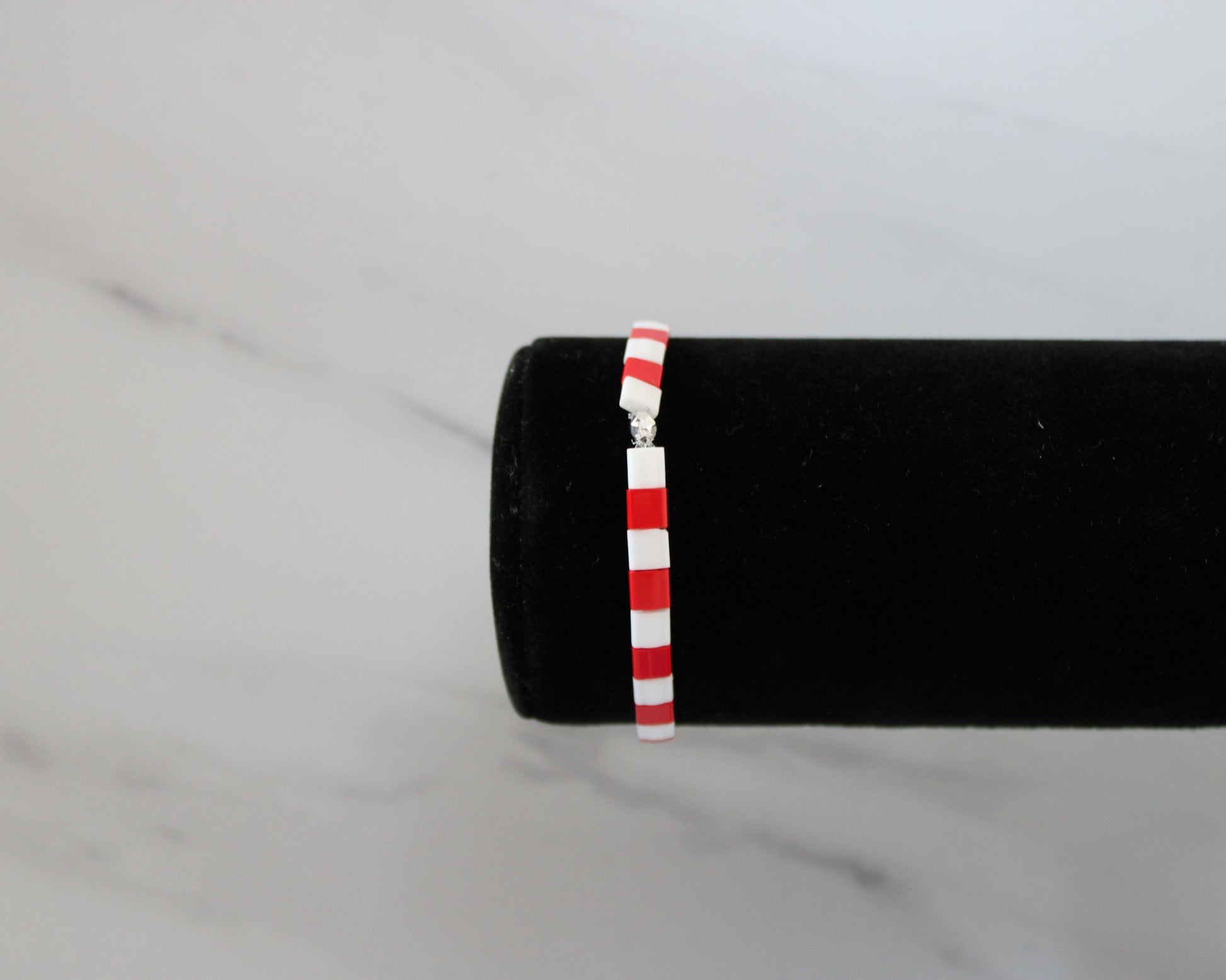 Add a bold touch to your look with this red and white patterned Tila bead bracelet. Featuring a sleek, repeating design, the red and white square beads create a unique, stylish statement.