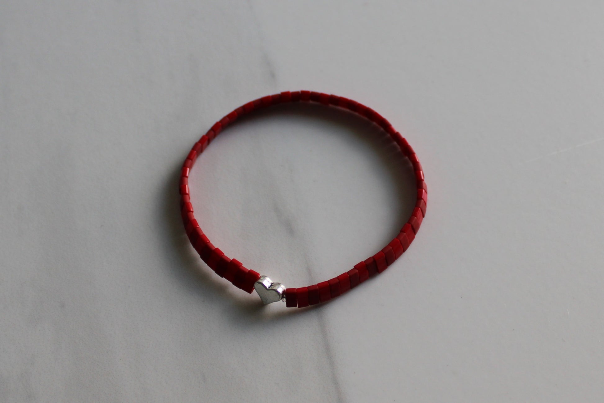 Celebrate love with Date Night Bracelet! The shiny and matte red patterned Tila beads add a bold, monotone touch, while the heart-shaped silver finisher bead gives it a sweet, romantic finish.