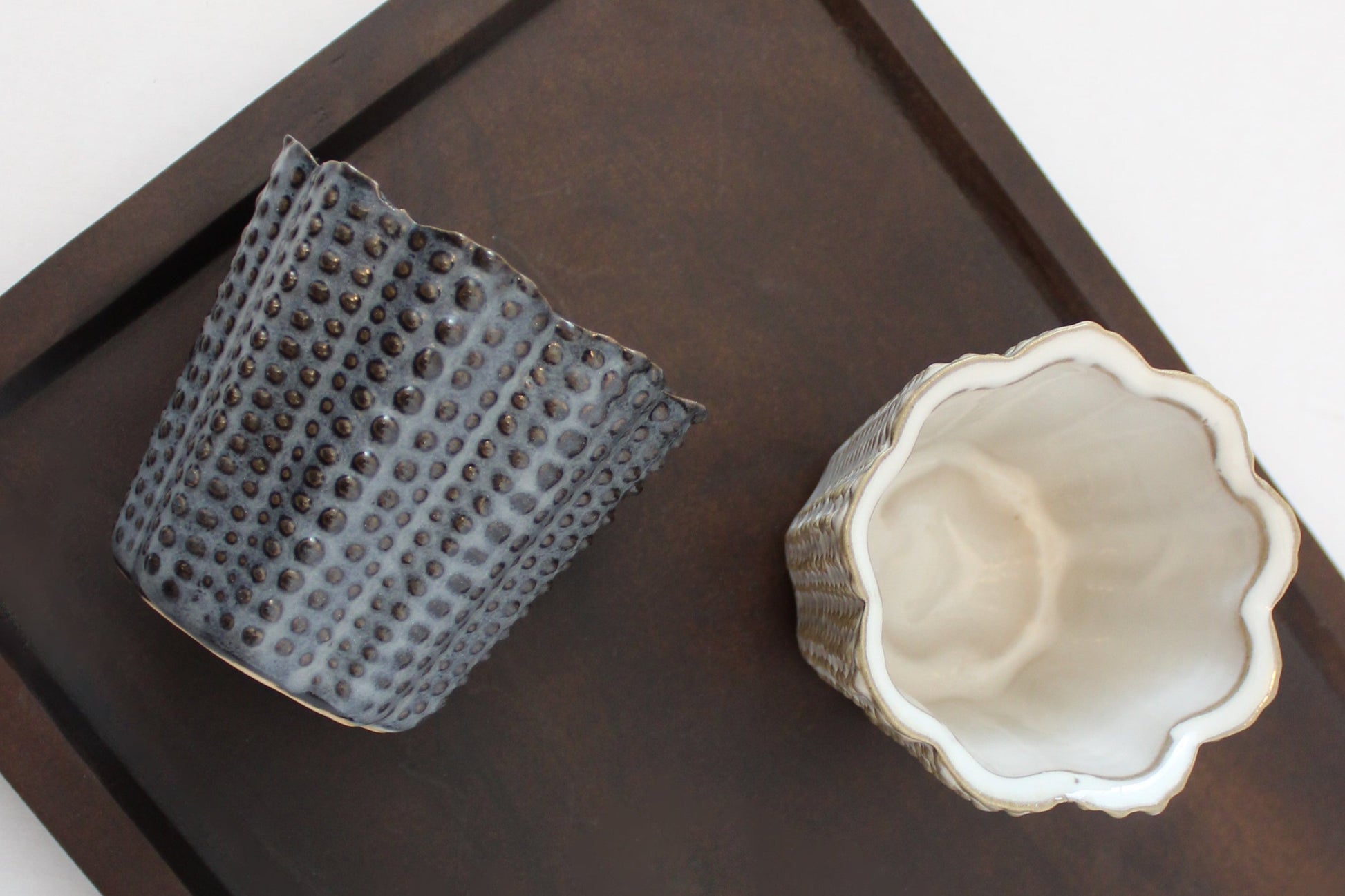 Brighten up your space with this set of matching mini plant pots. Both pots are designed with a playful raised circular pattern and finished with a charming scalloped rim. Ideal for small plants or succulents, these pots bring a unique and cohesive look to your indoor garden.