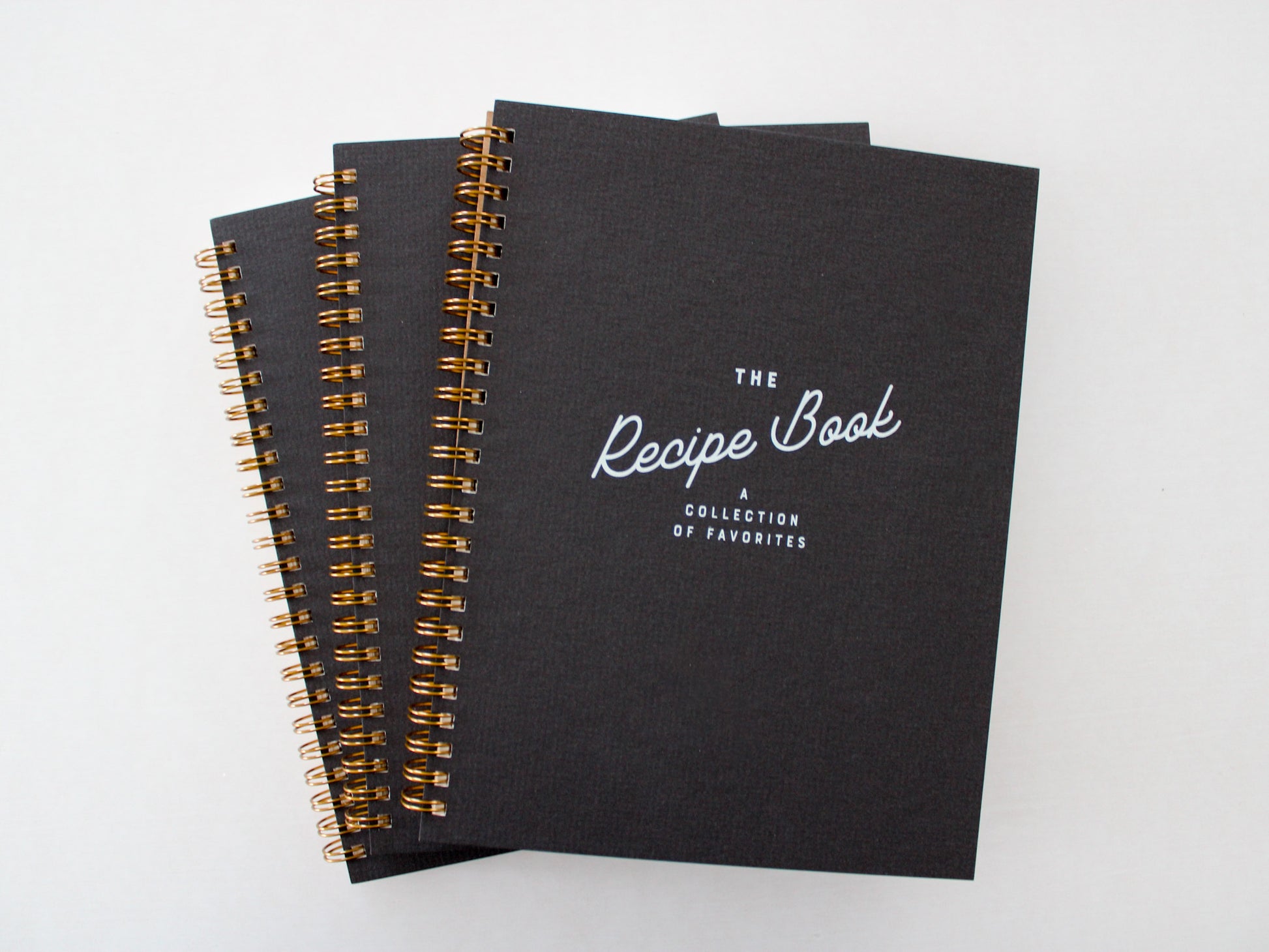 Black, 55 pages, gold spiral bound, made in Lawrence, KS