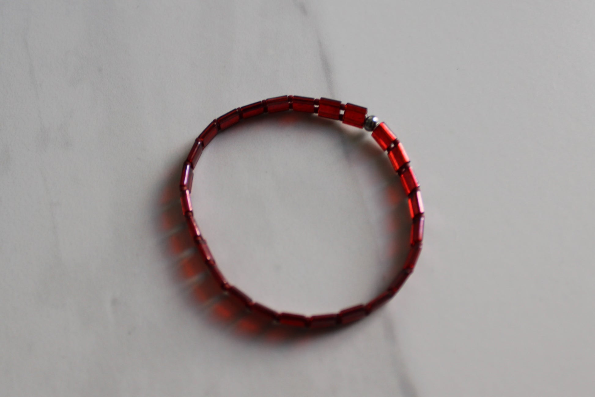 Add a touch of color with the Romance Bracelet in a rich dark reddish purple tone. The combination of flat Tila beads and sleek Delica beads creates a stylish, monotone look. This versatile bracelet is perfect for both everyday wear and special occasions, such as Valentine's Day!